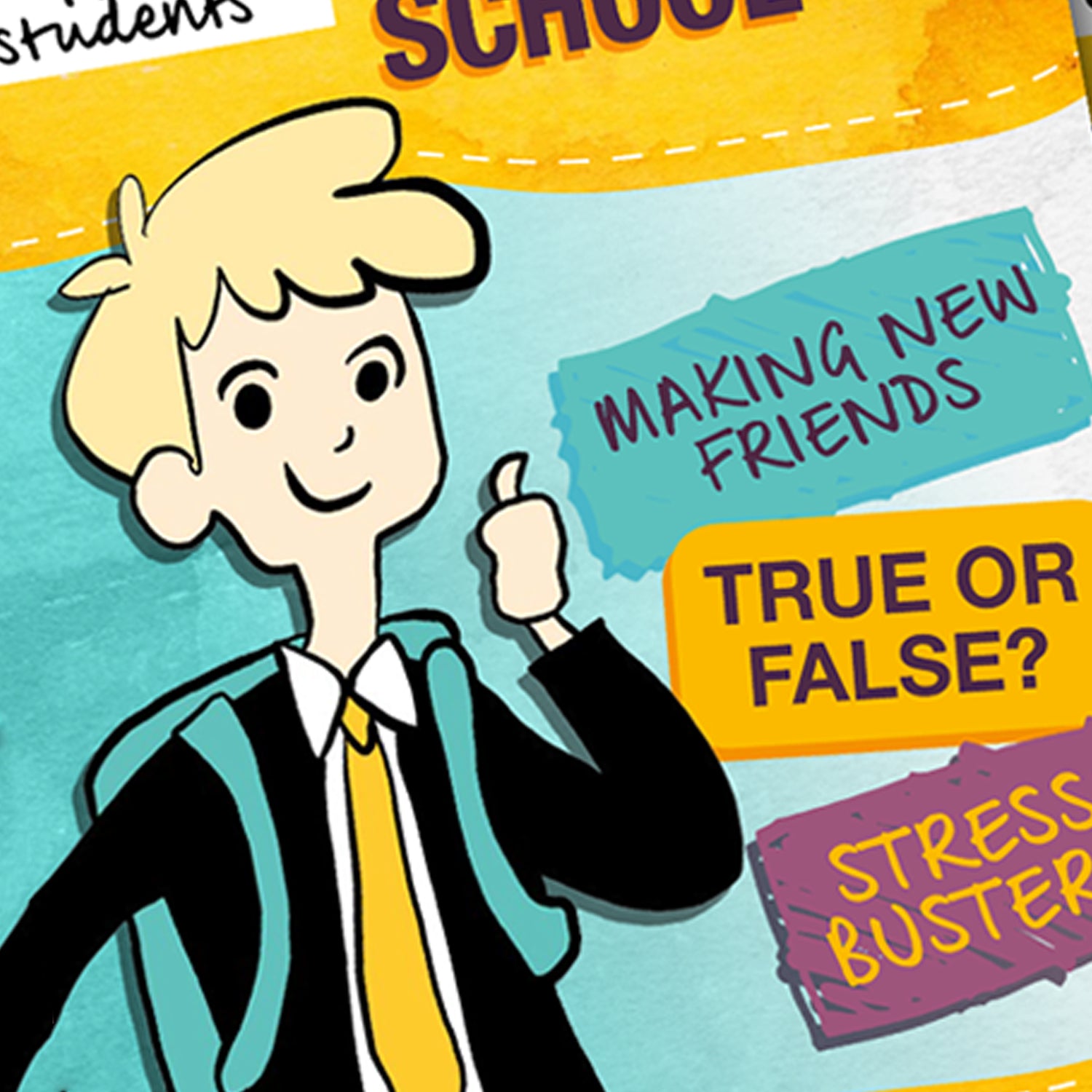 Illustration, graphic design, and layout skills used in this collaborative project, where we aimed to reassure and educate young students with Cystic Fibrosis during their transition to secondary school.