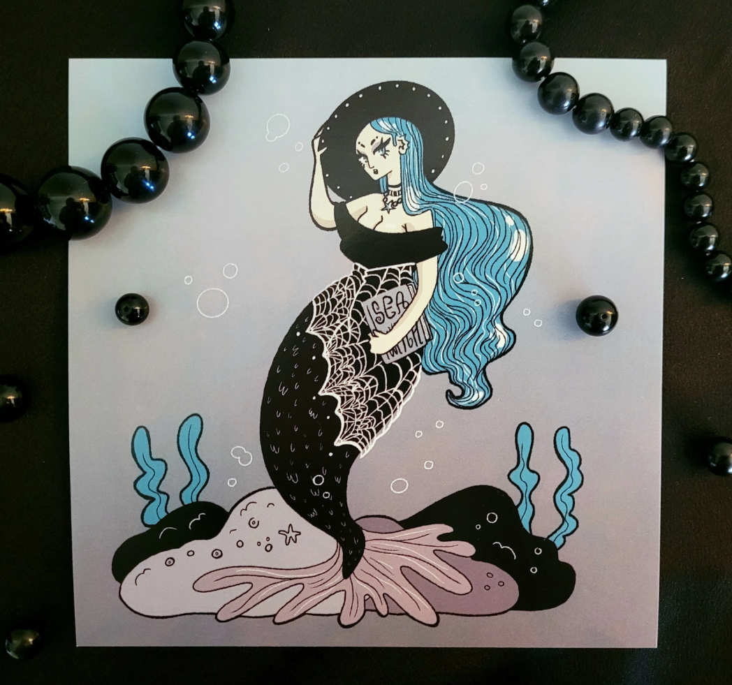 Gothic Witch Mermaid Art Print