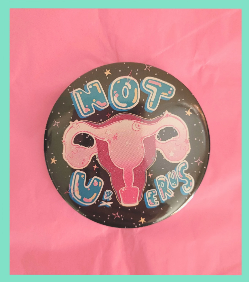 This big pro-choice badge is here for you to say it loud for everyone in the world to hear, STAY THE F AWAY FROM MY/WOMENS/AFAB REPRODUCTIVE RIGHTS!