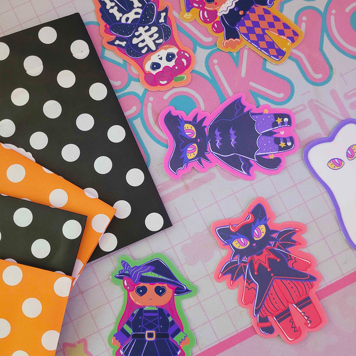Join Pom and Maggie on their Halloween adventures with these vinyl stickers! Get in the spooky spirit with Pom Pumpkin and Maggie, and add some flair to your spooky cute collection.
